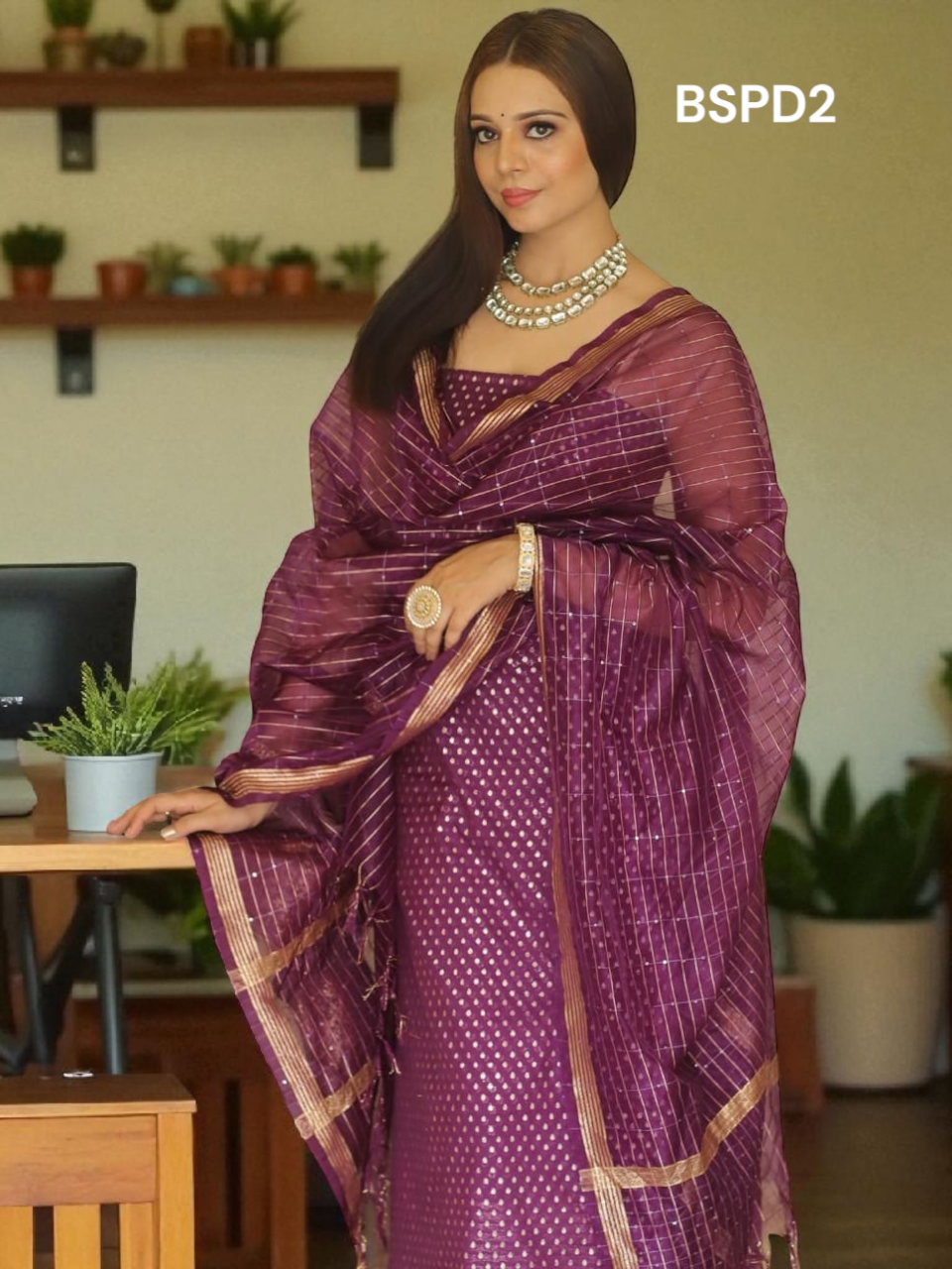 *Dupatta*: Lightweight soft organza silk, beautifully dyed and enhanced with check patterns and delicate sequin tikki embroidery