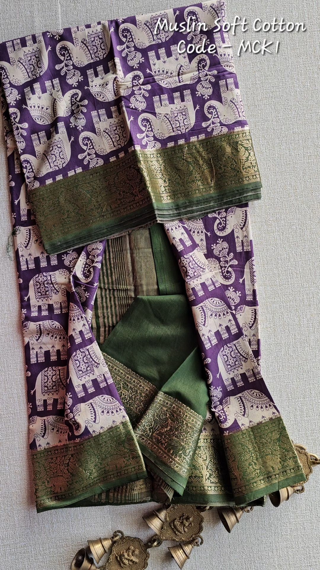 Muslin cotton ensures an extremely soft, airy, and breathable drape. Whether you wear it for long festive events or daily functions, the saree feels light on the body and offers unmatched comfort. Its subtle shine and neat fall make it look elite and polished.