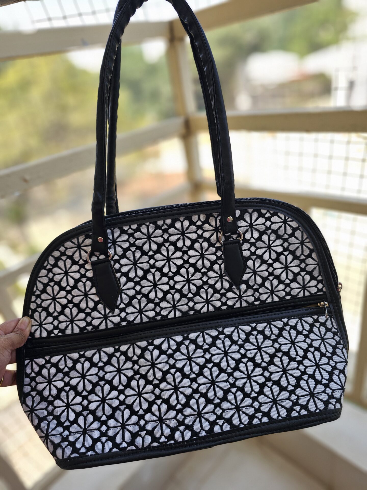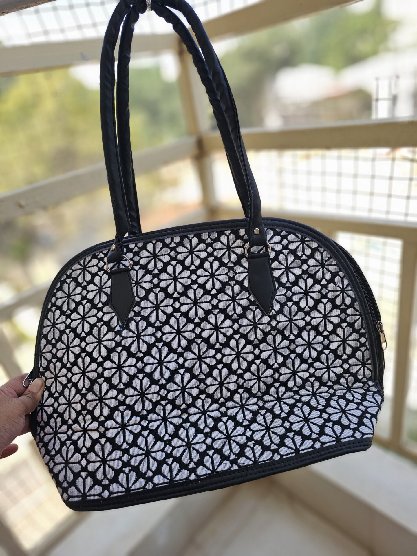 The classic black and white jacquard pattern makes this handbag look elegant, modern, and evergreen. You can pair it with formals for office, kurtis for casual outings, or even Western wear for travel. The bag elevates your look instantly without being flashy. If you have been looking for a stylish everyday handbag that also photographs beautifully for Instagram, this one is perfect.