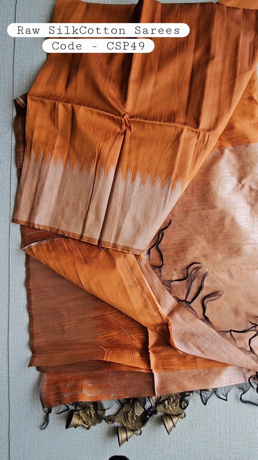 The Raw Silk Cotton Sarees are a perfect fusion of elegance and comfort, offering a timeless look that suits both traditional and modern occasions. With their lustrous finish and lightweight drape, these sarees bring out the best of raw silk?s richness blended with the softness of cotton. Each saree is designed with intricate silver zari weaving on the pallu, paired with either a self or contrast blouse that completes the ensemble beautifully.